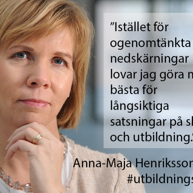 – I den grundläggande utbildningen vill vi garantera tillgången till god elevvård och mångsidigt stöd längs hela inlärningsstigen. Gruppstorleken ska alltid beakta gruppens sammansättning, så att alla barns rätt till inlärning tryggas. Behörig personal på alla utbildningsnivåer ska vara en grundrättighet och lärarnas välmående måste beaktas bättre, säger Anna-Maja Henriksson.